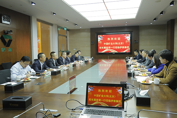 张东海对葛世荣一行到访伊泰集团表示热烈欢迎,对我校为伊泰集团提供的人才支撑和技术支持表示衷心感谢。他介绍了伊泰集团的发展情况和业务板块,并表示,伊泰集团关注安全生产和企业责任,在生产模式和开采方式上不断创新,实现新的突破。矿大(北京)为煤炭行业和伊泰集团发展发挥了巨大作用,希望与我校进一步加强智能化、流态化开采方面的技术和人才合作。