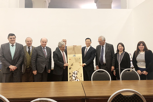 何满潮向Varde院长表示感谢,同时感谢阿根廷工程院的认可和授予的荣誉,并代表中国岩石力学与工程学会向阿根廷工程院赠送礼物。