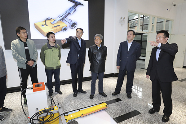 陈宝生在考察大学生科技创新中心时,听取了学校本科人才培养的汇报,观看了大学生科技创新作品展示,认为学校实施本科生全程导师制和大学生科技创新有特色、有成效。