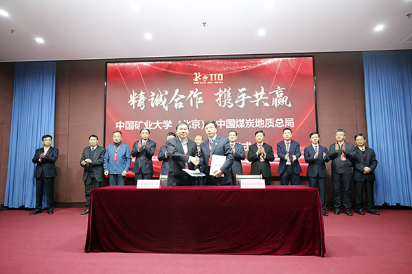 副校长赵峰华同中国煤炭地质总局副局长潘树仁共同签署校企战略合作协议。双方将通过在人才培养、人才输送、科研合作及科研团队组建、交流机制等方面深入合作。