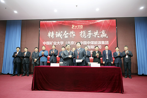 副校长赵峰华同中国中煤能源集团有限公司总工程师马世志共同签署校企战略合作协议。双方将致力于推进煤炭工业科技创新与进步,为煤炭工业安全发展、绿色发展、智能发展提供科技支撑。